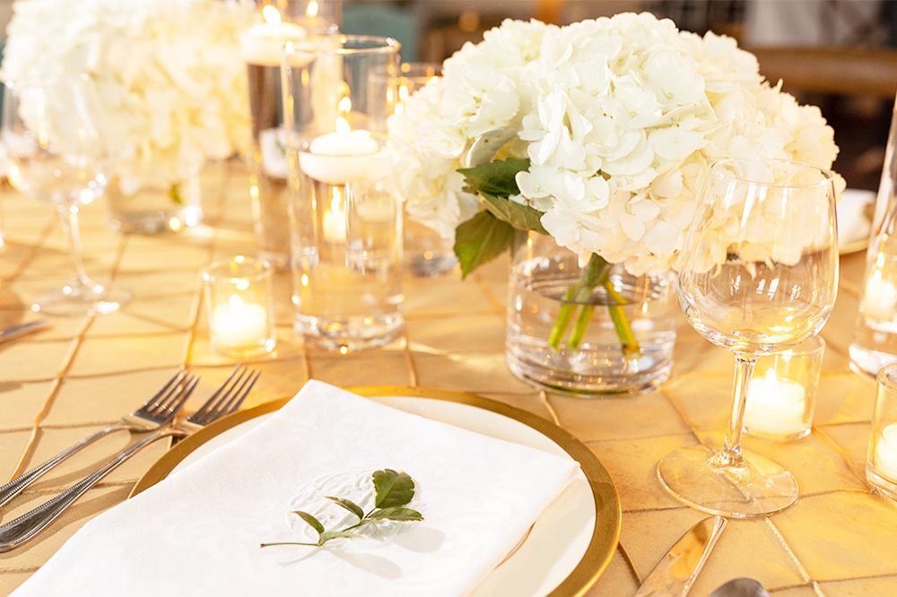 Perfect for a Jacksonville bridal luncheon, shower or rehearsal dinner with al fresco entertaining, six large, 9′ farm-tables and french x-back seating for 72 guests.